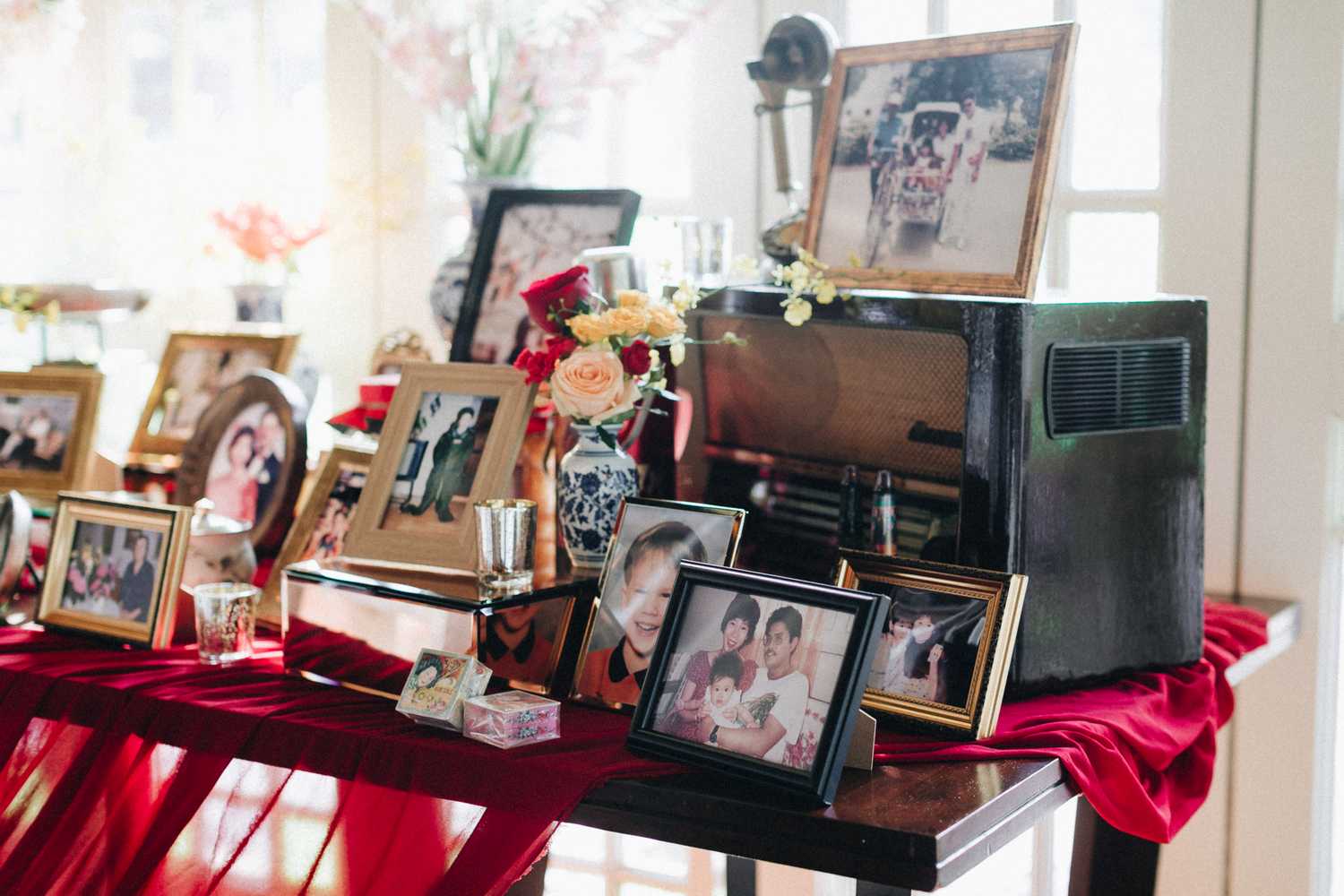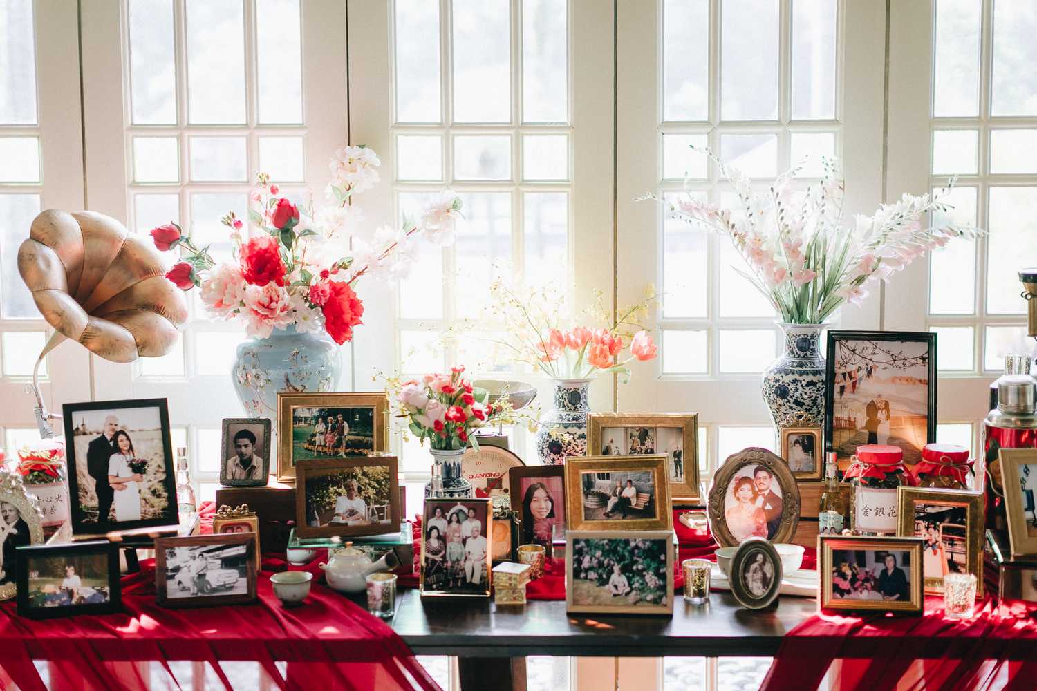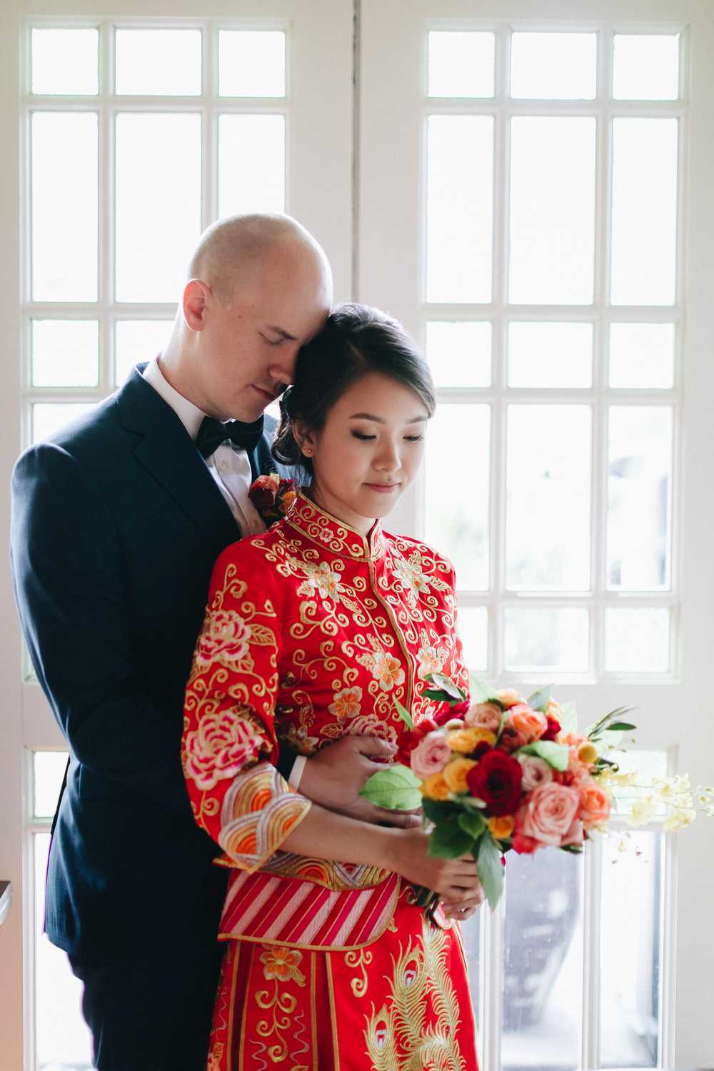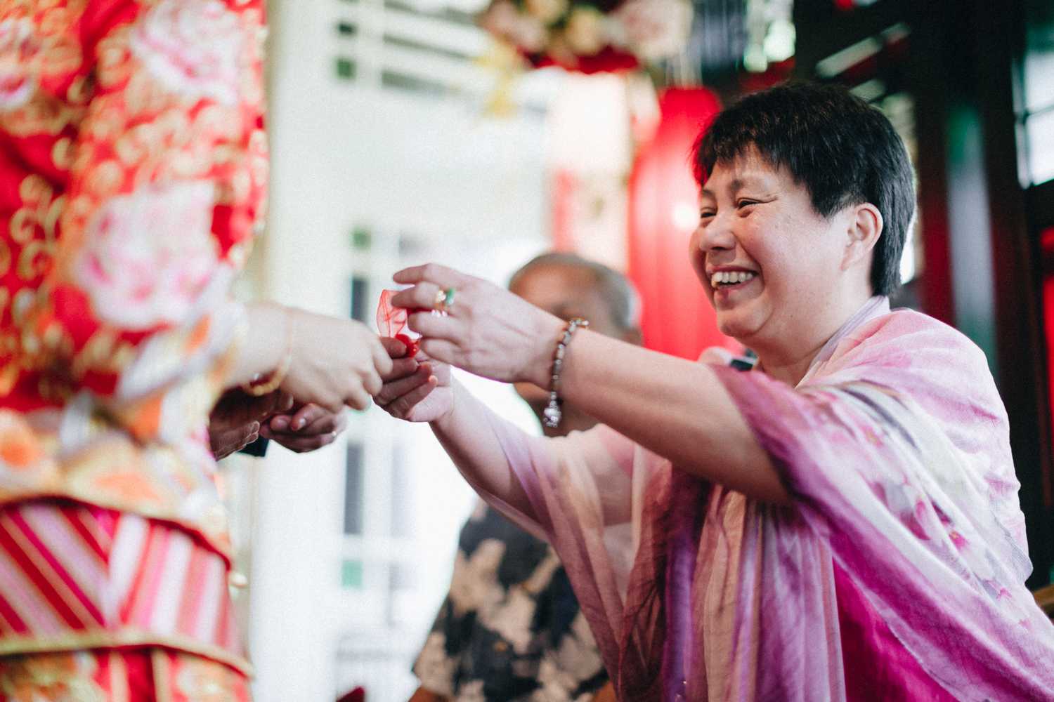 Ti-Chen’s space was transformed into an exquisite oriental atmosphere, injected with Peranakan elements that fused the vibrant tones of the Kebaya tops the women donned on and bright hues that stood out from the red and yellow floral blooms all around. We were blessed to have the most amazing natural light that elevated the entire space, casting a radiant and somewhat magical glow to the already-existing heartwarming ambience where Jacqueline and Par carried out their tea ceremony.