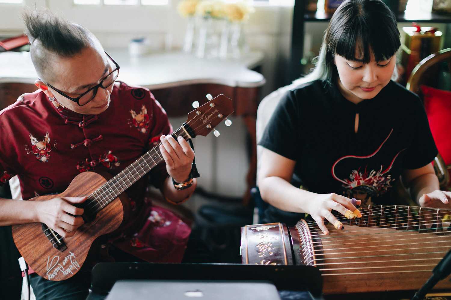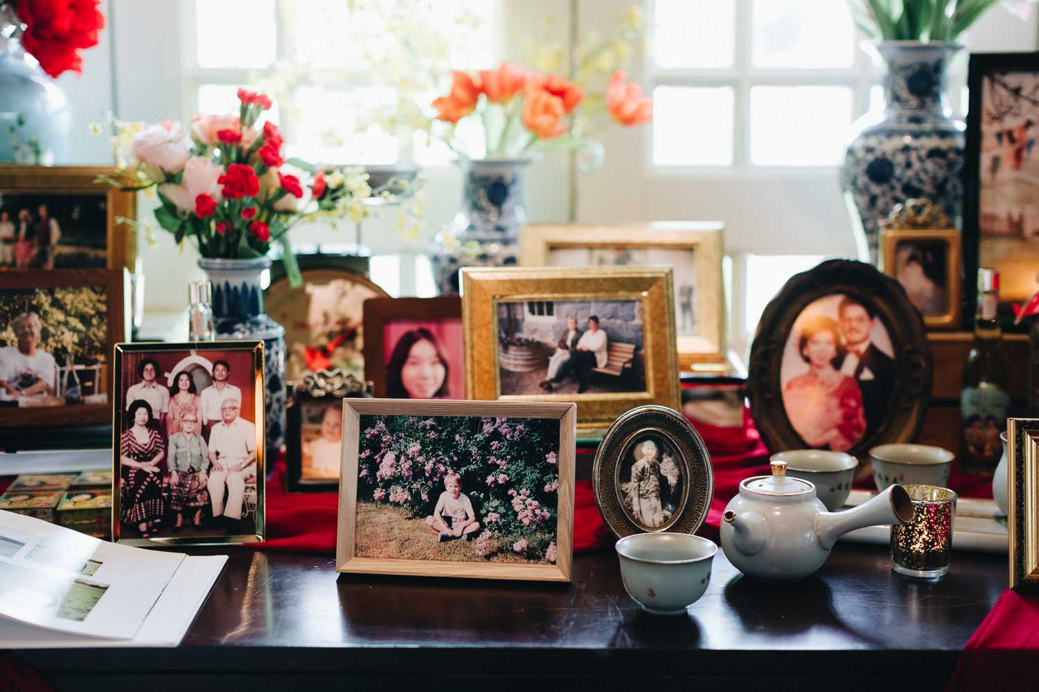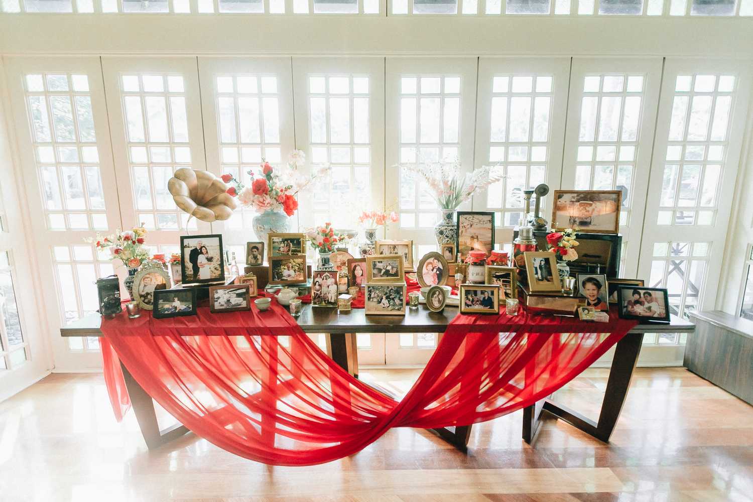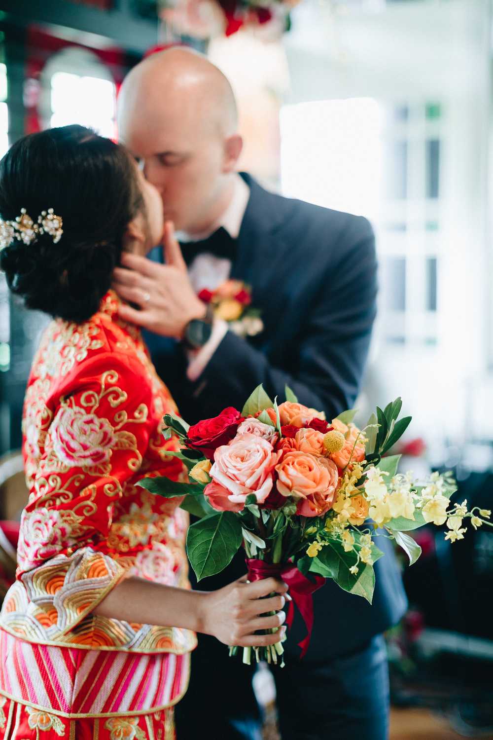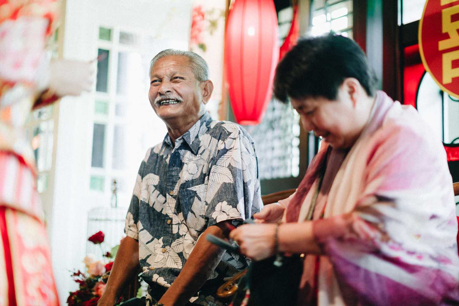 Ti-Chen’s space was transformed into an exquisite oriental atmosphere, injected with Peranakan elements that fused the vibrant tones of the Kebaya tops the women donned on and bright hues that stood out from the red and yellow floral blooms all around. We were blessed to have the most amazing natural light that elevated the entire space, casting a radiant and somewhat magical glow to the already-existing heartwarming ambience where Jacqueline and Par carried out their tea ceremony.